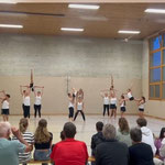 Der erste Wettkampf der TR fand am Freitag 9. Mai am Fiirobigcup in Engelburg statt. Die Turnerinnen traten im Team Aerobic und Schulstufenbarren an. Dieser Wettkampf diente uns als Standortbestimmung. Im Geräteturnen wurde streng gewertet, wir erhielten die Note 7.90. Darüber waren wir schon enttäuscht. Es wurde deutlich, dass in der Einzelausführung noch viel Potenzial drin liegt. Im Team Aerobic wurden wir mit einer Note 8.87 belohnt, alles Dings lief es nicht für alle optimal, sowie man auf dem Bild erkennen kann. Auch da gibt es noch genügend Luft nach oben. Wir werden für die weiteren Wettkämpfe fleissig weiter trainieren und hoffen auf eine stetige Steigerung. Der nächste Wettkampf steht bereits vor der Tür und findet am 17.05.25 in Wilchingen statt.