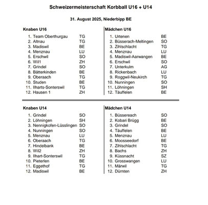Am Sonntagmorgen den 31.8.2025 um 5:30 Uhr haben wir uns alle in Weinfelden am Bahnhof versammelt. Ausser unser Hauptjugileiter Manuel Haldemann. Erst 2 Minuten vor Abfahrt schoss er mit seinem Auto auf den Parkplatz. Das Auto gefüllt mit Sonnenschirmen, welche auch noch mit auf die Reise mussten. Dank dem die Jugi-Jungs mit anpackten, erwischten wir pünktlich den Zug und die Reise konnte endlich losgehen. Auf der Hinreise mussten wir 2-mal umsteigen und nach knapp 2.5h fahrt, kamen wir in Niederbipp an. Nach einem kurzen Einwärmen und der T-Shirt Verteilung stand schon das erste Spiel an. Wir sind mit 2 Mannschaften gestartet, einem U14 und U16 Team. Beide Mannschaften hatten 5 Vorrunden Spiele zu absolvieren und danach noch ein Finalspiel. Am Ende hat sich das U16 Team den 11. Platz erkämpft und das U14 Team sogar den 9. Platz. Als wir auf die Rangverkündigung gewartet haben, haben sich die meisten die Zeit mit dem ESAF zuschauen vertrieben. Kurz vor Ende der Rangverkündigung sind wir auf den Zug gesprintet, sodass wir schon einen Zug früher nehmen konnten und dem zu folge früher zuhause waren. Auf dem Rückweg fuhren wir über Zürich und schauten den Schlussgang auf dem Handy. In Weinfelden verabschiedeten wir uns voneinander.