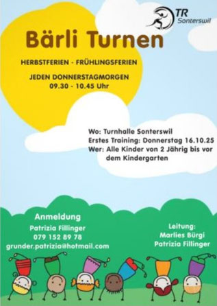 Ab dem 16. Oktober 2025 startet unser beliebtes Bärli Turnen in eine neue Runde! Eingeladen sind alle bewegungsfreudigen Kinder ab 2 Jahren bis vor dem Kindergartenalter, die Lust haben, gemeinsam mit Mama, Papa oder einer anderen Begleitperson die Welt des Turnens zu entdecken.