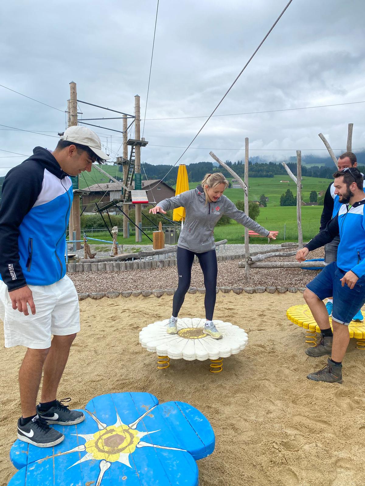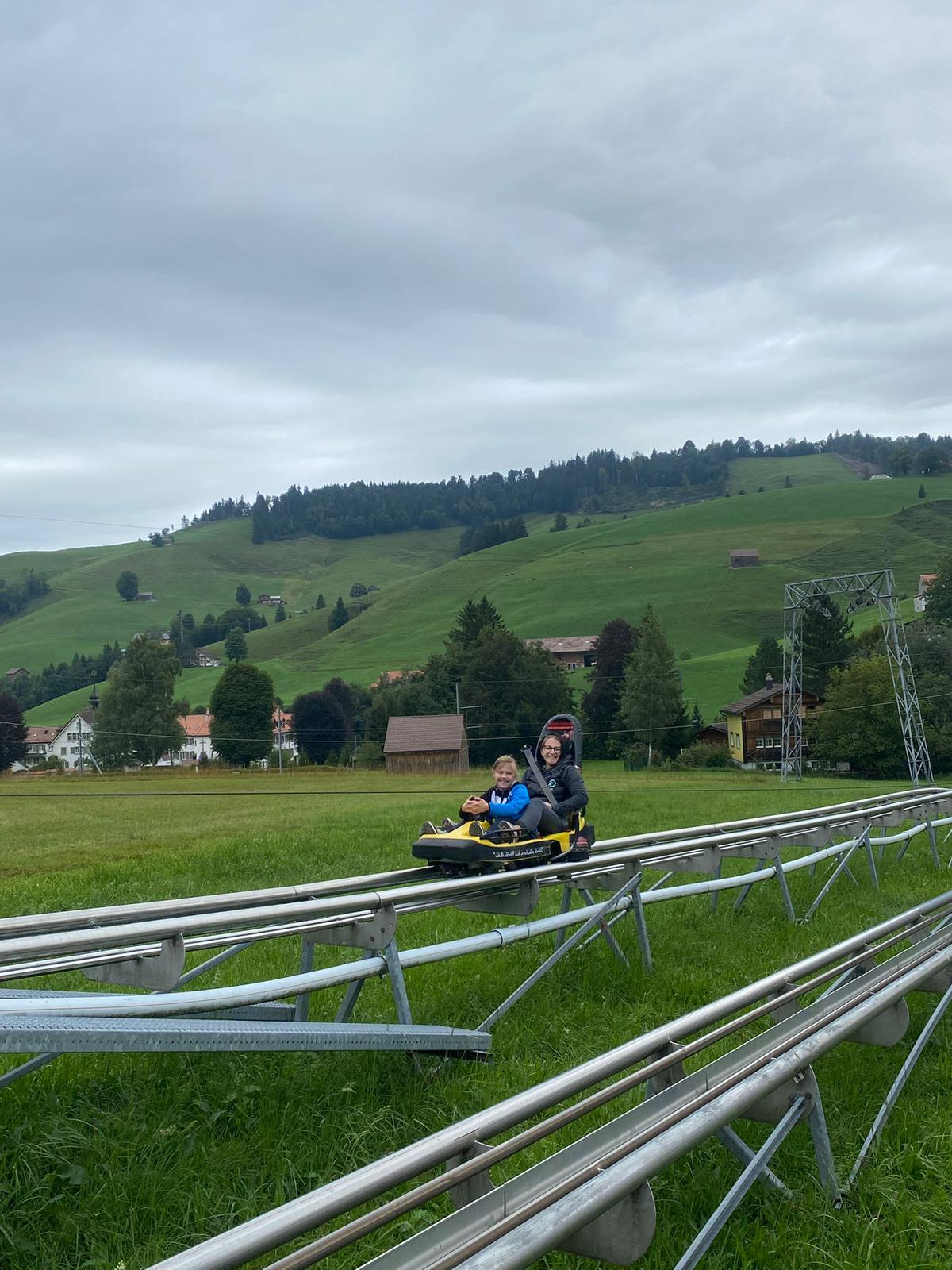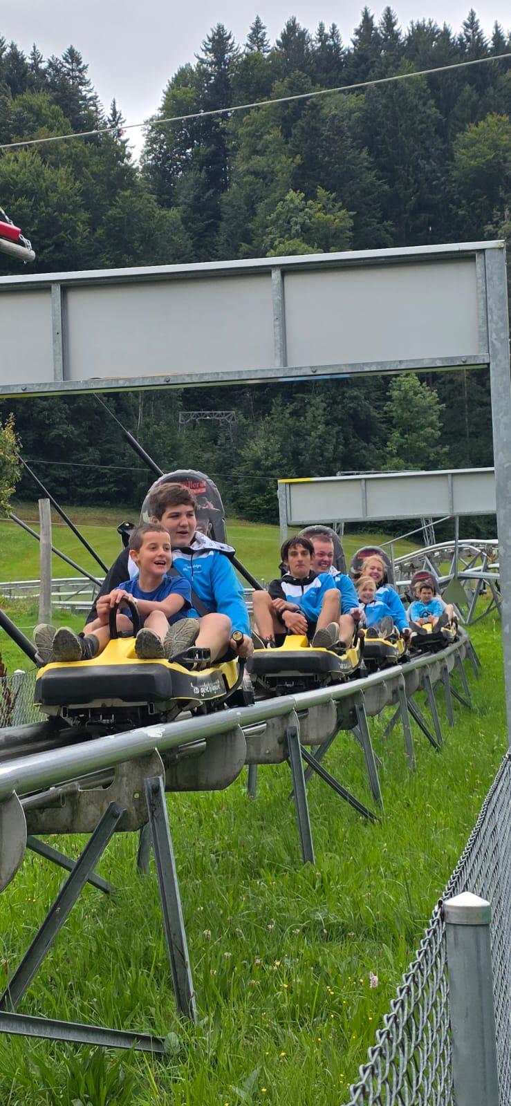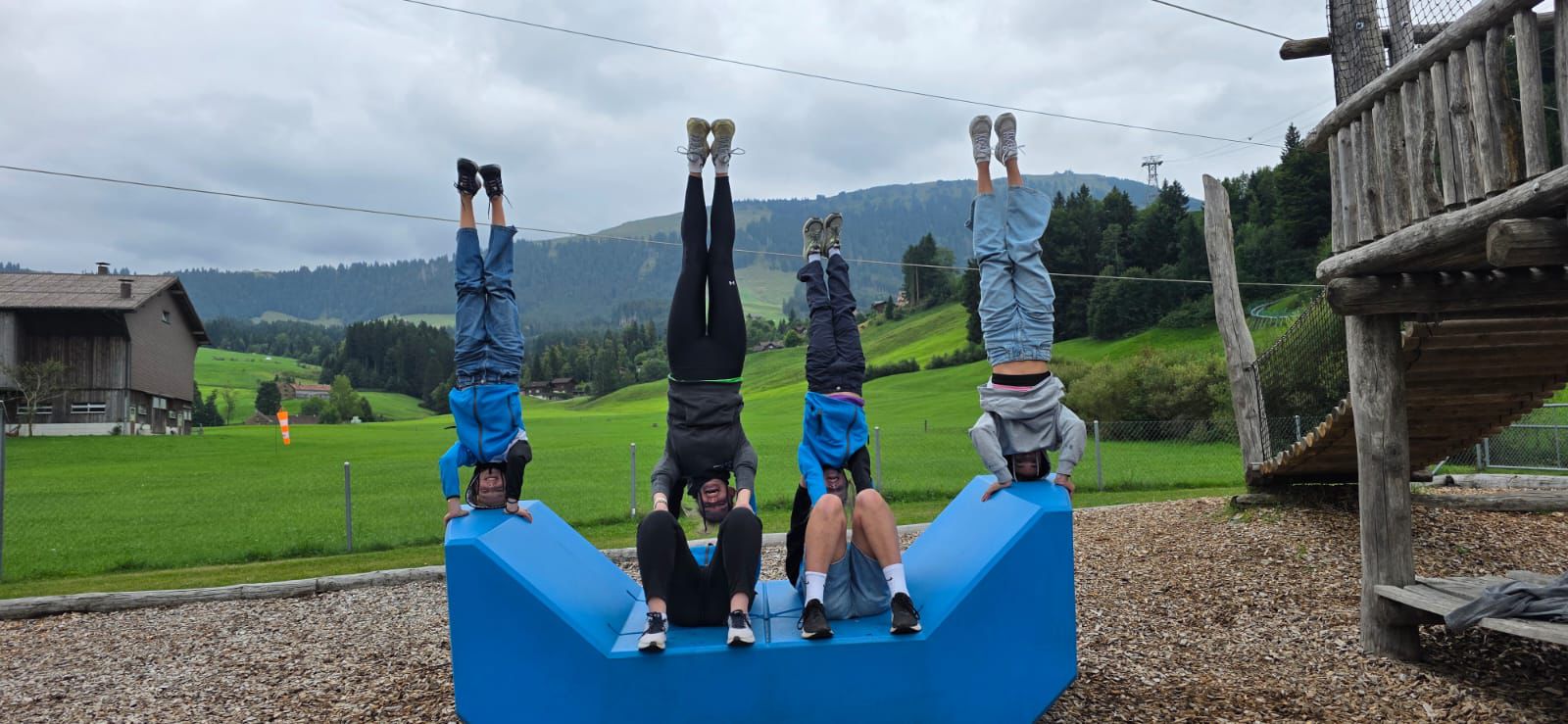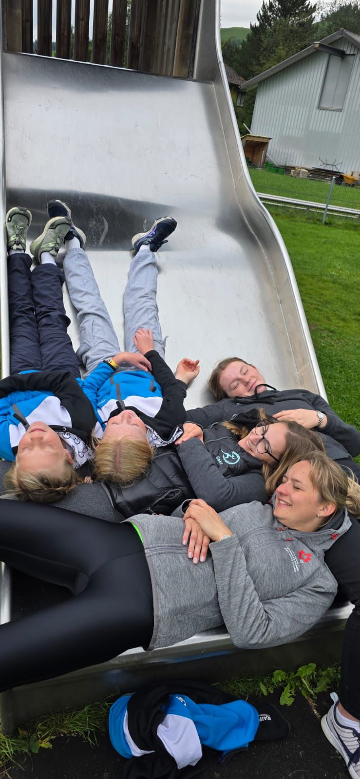 Am Wochenende vom 13.09 und 14.09.2025 fand unsere TR-Reise statt. Wie immer war es eine Überraschung wo die Reise hingehen wird. Treffpunkt war am Samstagmorgen um 06.15 Uhr beim Schulhaus, wo wir dann anschliessend mit einem Bus in Empfang genommen wurden. Nachdem alle Taschen gepackt und alle Turnerinnen eingestiegen waren, ging es weiter nach Frauenfeld um dort noch unsere letzte Turnerin in Empfang zu nehmen. Weiter ging die Fahrt. Während der Fahrt haben wir verschiedene Spiele gemacht, bis unser Reiseziel bekannt gegeben wurde. Die TR-Reise führte uns in den Kanton Fribourg, erster halt war in Charmey wo wir eine kleine Wanderung bis zur ersten Station durchgeführt haben. Dort gingen wir in einen Kletterpark, wo wir uns bis zum Mittagessen austoben konnten. Das Dessert nahmen wir anschliessend auf dem Berg passend mit einem Kaffee dazu, bevor es anschliessend gestärkt wieder nach unten zur Mittelstation ging. Der Weg nach unten war mit diversen Rutschen ausgelegt, mit denen man auch einige Höhenmeter nach unten gutmachen konnte. Im Anschluss gingen wir dann zu unserem Hotel in Bulle, wo wir kurz Zeit hatten unsere Zimmer zu beziehen und anschliessend uns für das Abendessen fertig zu machen. Da wir noch zu früh beim Restaurant ankamen, verweilten wir uns im Städtchen. Dort fand zufällig kleines Fest statt, welches auch direkt bei dieser Strasse war, ähnlich wie eine WEGA aber viel kleiner. Es wurde das Ernteende gefeiert. Nach dem Abendessen gingen wir uns nochmals das Fest anschauen bis uns der Weg zu einer Bar führte. Am nächsten Morgen haben wir alle ein leckeres Frühstück genossen, die einen waren fitter als die anderen und hatten mehr Appetit als andere. Im Anschluss gingen wir nochmals in die Stadt und haben uns dort beim Fest den Umzug angeschaut. Am Nachmittag besuchten wir die Cailler Schokoladenfabrik. Im Atelier konnten unsere Kreativität beim Dekorieren von Schokolade testen. Eine Führung durch die Cailler Schokoladenfabrik rundete den Tag ab, bevor wir uns wieder auf den Heimweg machten. Ein herzliches Dankeschön an Valérie und Manuela für die Organisation dieser abwechslungsreichen, abenteuerlichen und spassigen TR- Reise.