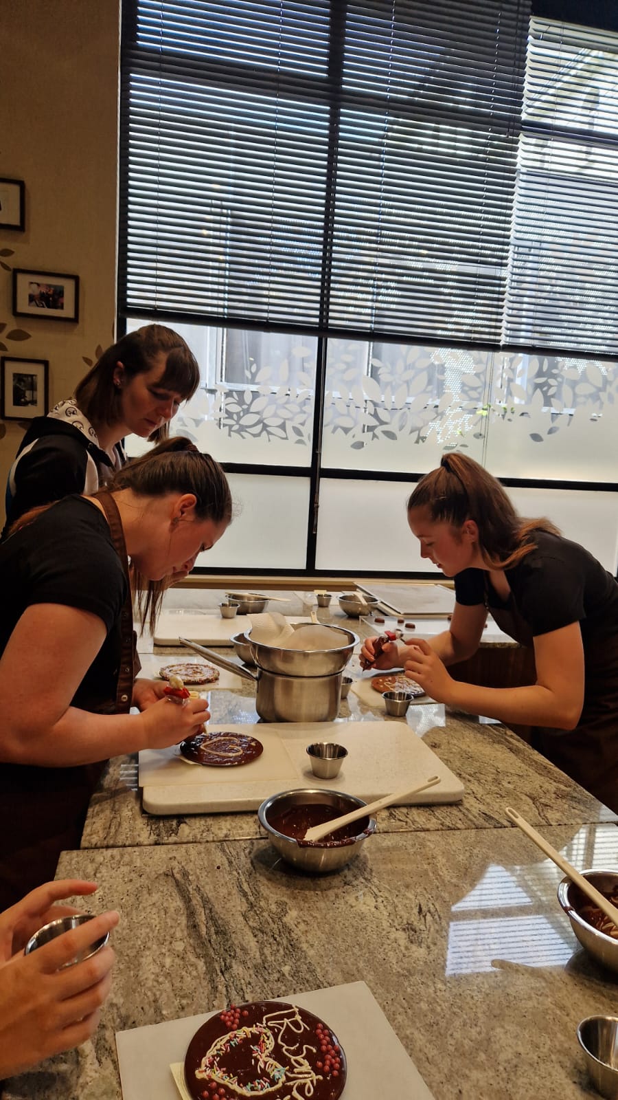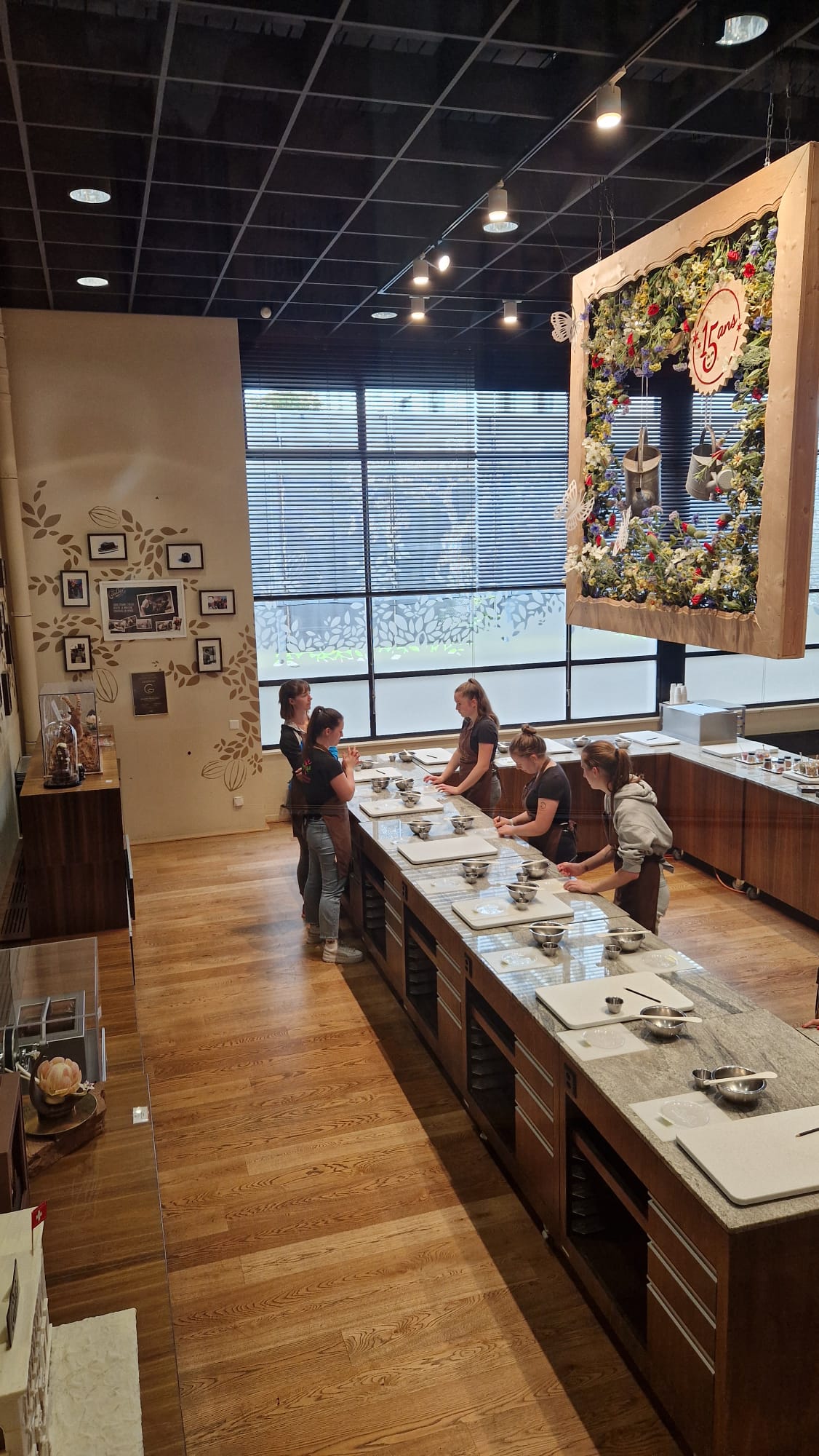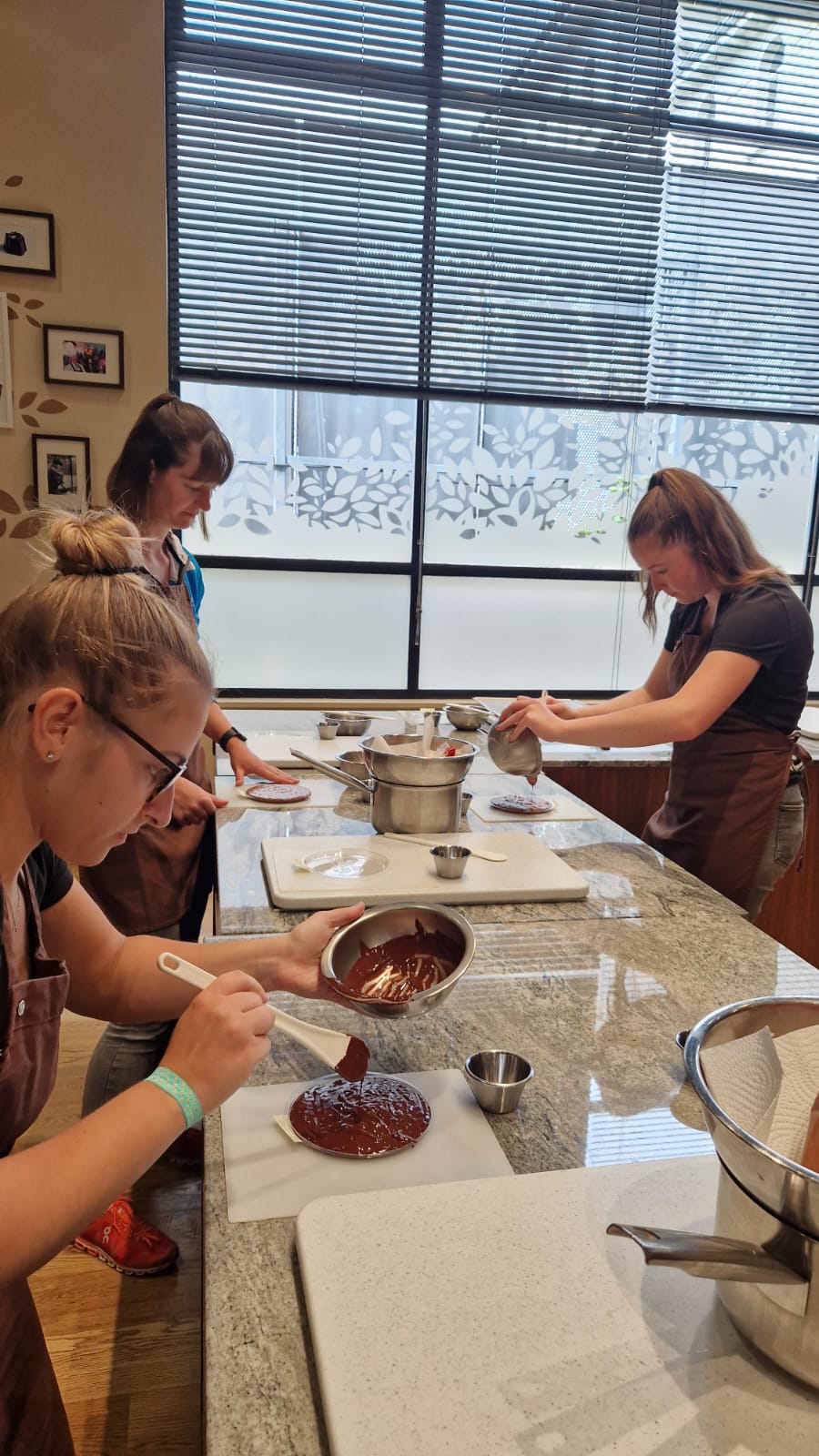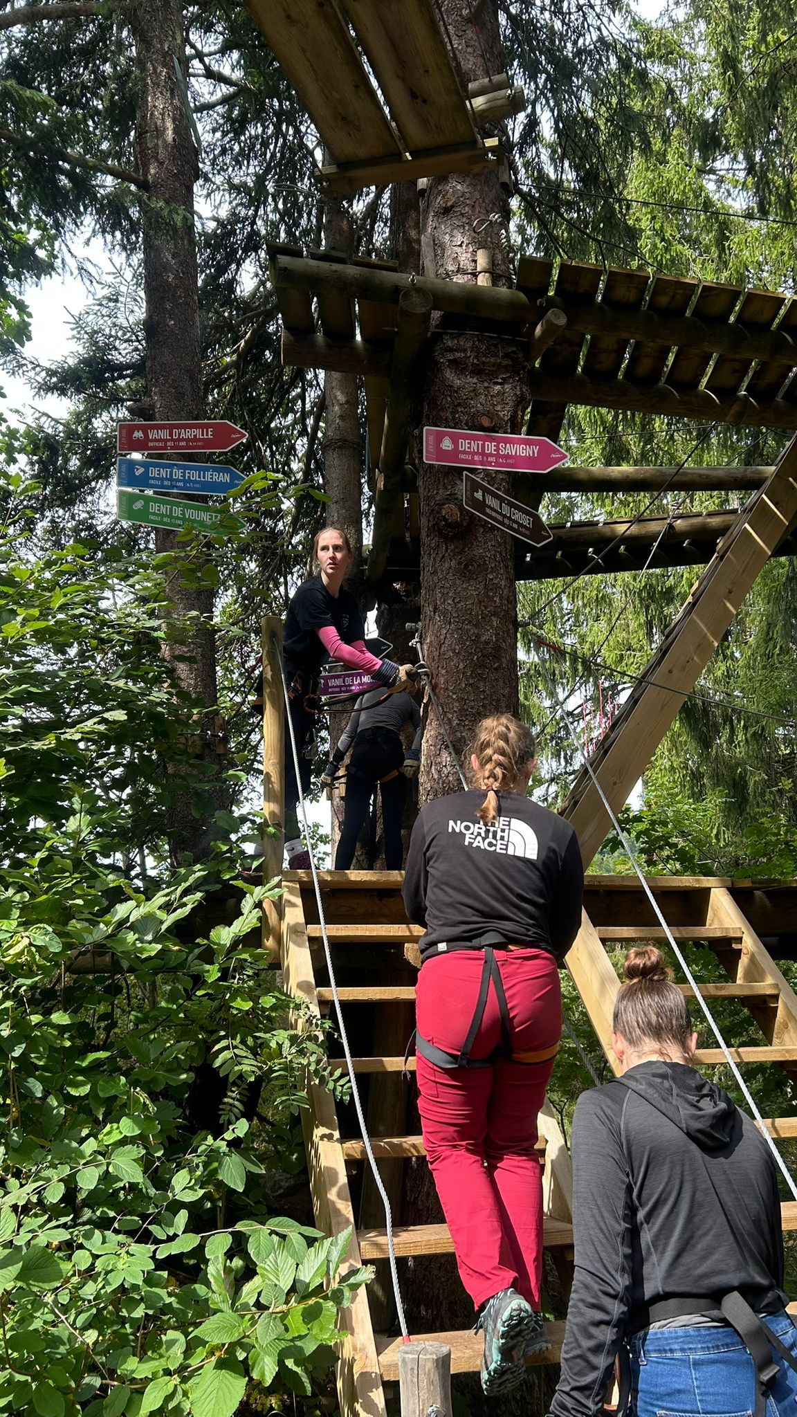 Am Wochenende vom 13.09 und 14.09.2025 fand unsere TR-Reise statt. Wie immer war es eine Überraschung wo die Reise hingehen wird. Treffpunkt war am Samstagmorgen um 06.15 Uhr beim Schulhaus, wo wir dann anschliessend mit einem Bus in Empfang genommen wurden. Nachdem alle Taschen gepackt und alle Turnerinnen eingestiegen waren, ging es weiter nach Frauenfeld um dort noch unsere letzte Turnerin in Empfang zu nehmen. Weiter ging die Fahrt. Während der Fahrt haben wir verschiedene Spiele gemacht, bis unser Reiseziel bekannt gegeben wurde. Die TR-Reise führte uns in den Kanton Fribourg, erster halt war in Charmey wo wir eine kleine Wanderung bis zur ersten Station durchgeführt haben. Dort gingen wir in einen Kletterpark, wo wir uns bis zum Mittagessen austoben konnten. Das Dessert nahmen wir anschliessend auf dem Berg passend mit einem Kaffee dazu, bevor es anschliessend gestärkt wieder nach unten zur Mittelstation ging. Der Weg nach unten war mit diversen Rutschen ausgelegt, mit denen man auch einige Höhenmeter nach unten gutmachen konnte. Im Anschluss gingen wir dann zu unserem Hotel in Bulle, wo wir kurz Zeit hatten unsere Zimmer zu beziehen und anschliessend uns für das Abendessen fertig zu machen. Da wir noch zu früh beim Restaurant ankamen, verweilten wir uns im Städtchen. Dort fand zufällig kleines Fest statt, welches auch direkt bei dieser Strasse war, ähnlich wie eine WEGA aber viel kleiner. Es wurde das Ernteende gefeiert. Nach dem Abendessen gingen wir uns nochmals das Fest anschauen bis uns der Weg zu einer Bar führte. Am nächsten Morgen haben wir alle ein leckeres Frühstück genossen, die einen waren fitter als die anderen und hatten mehr Appetit als andere. Im Anschluss gingen wir nochmals in die Stadt und haben uns dort beim Fest den Umzug angeschaut. Am Nachmittag besuchten wir die Cailler Schokoladenfabrik. Im Atelier konnten unsere Kreativität beim Dekorieren von Schokolade testen. Eine Führung durch die Cailler Schokoladenfabrik rundete den Tag ab, bevor wir uns wieder auf den Heimweg machten. Ein herzliches Dankeschön an Valérie und Manuela für die Organisation dieser abwechslungsreichen, abenteuerlichen und spassigen TR- Reise.