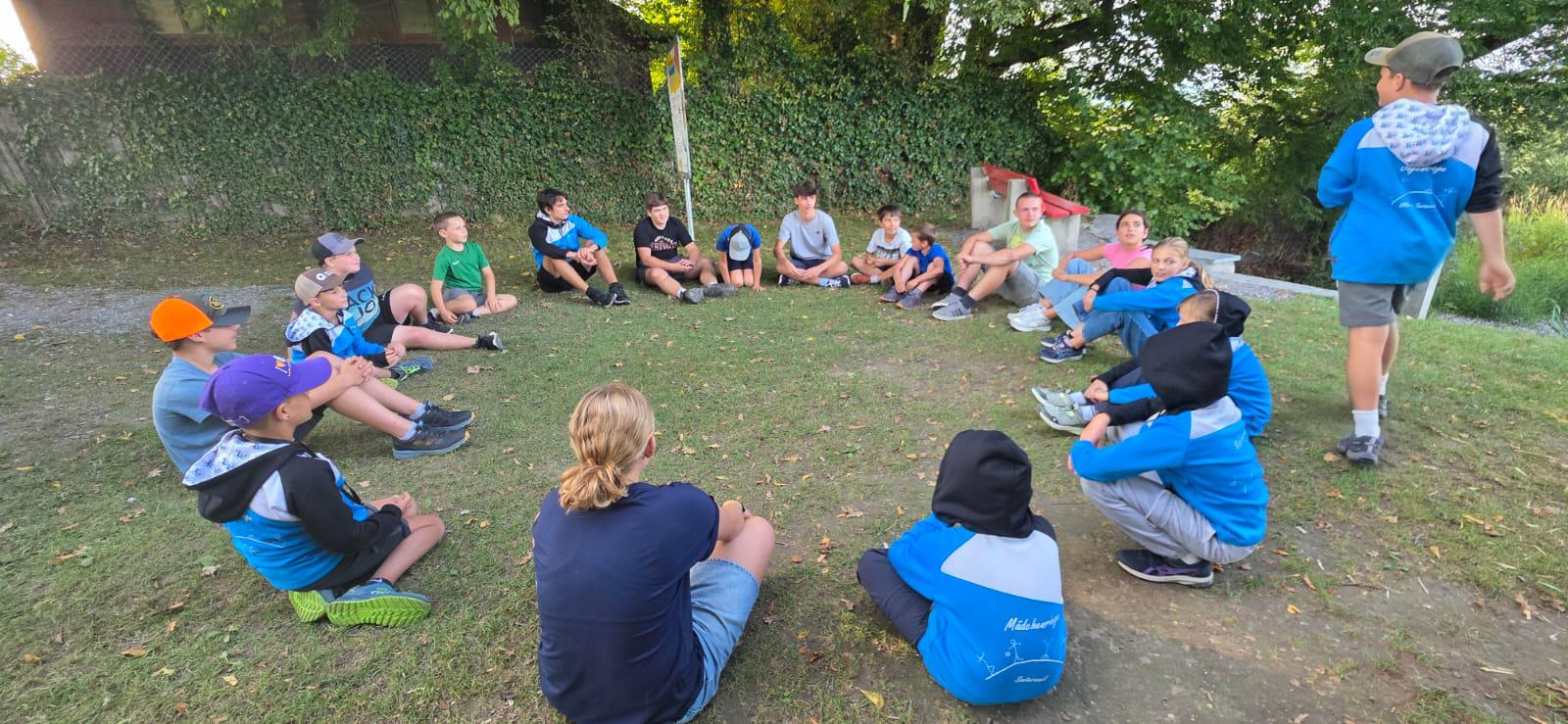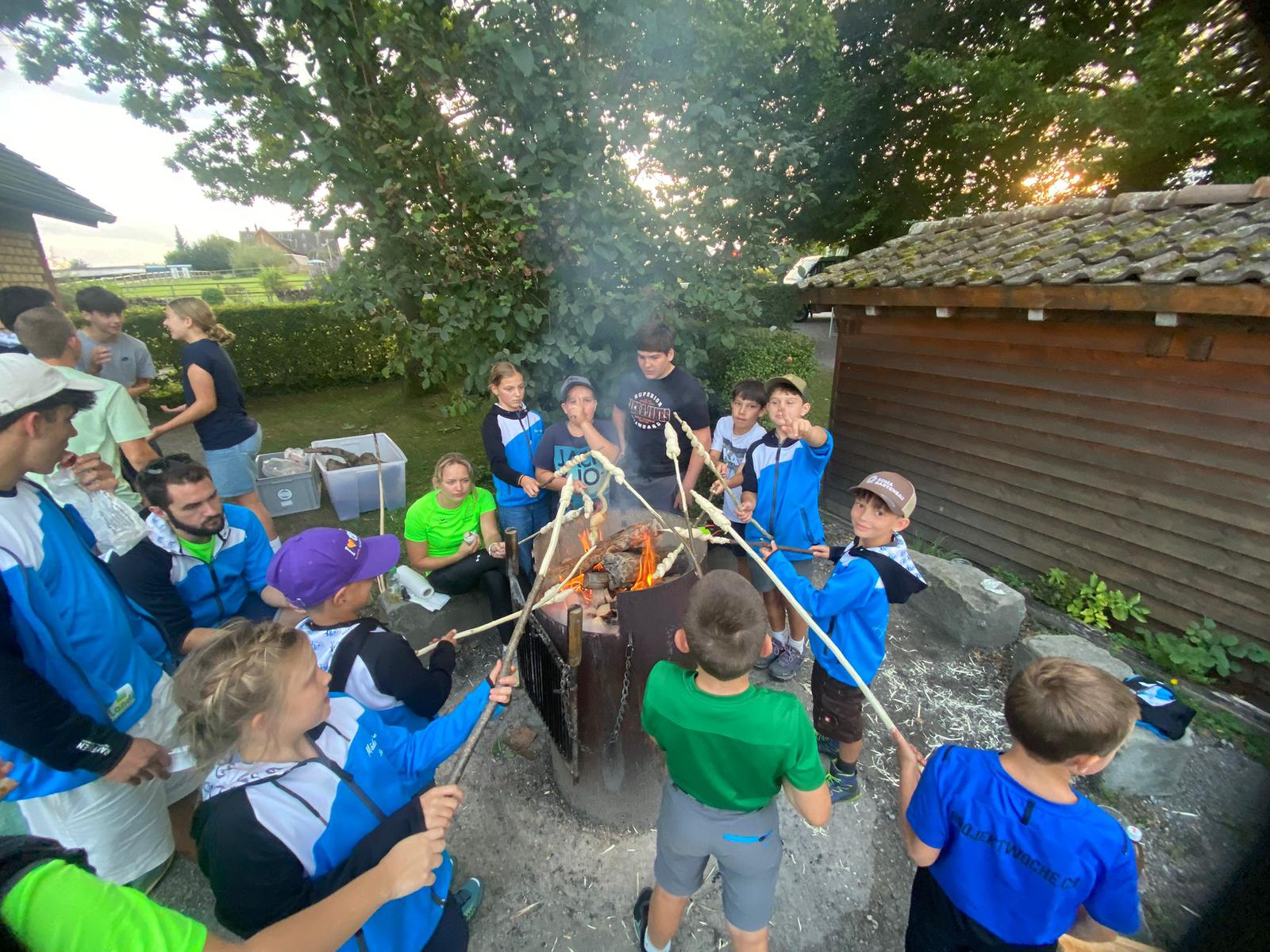 Am Samstagmorgen versammelten wir uns am Bahnhof Weinfelden. Die Zugfahrt führte uns ins Appenzellerland. Mit der Appenzellerbahn gingen wir dann auf den Kronberg. Dort konnten sich die Kinder auf dem Spielplatz oder auf der Rodelbahn austoben. Nicht nur für die Kinder war es ein Highlight auf dem Spielplatz, sondern natürlich auch die Leiterinnen haben sich ausgetobt auf dem Spielplatz, wie man so schön sagt, in jedem Erwachsenen steckt auch ein stück Kind. Das Mittagessen nahmen wir ebenfalls auf dem Kronberg ein. Gestärkt konnten sich die Kindern nochmals austoben bis es dann hiess alles packen und bereit machen zum Abmarsch. Mit dem Zug reisten wir zurück nach Arbon. Von Arbon her gingen wir am See entlang zu Fuss zu unserer Unterkunft, welche in Frasnacht war. Die Kinder konnten ihre Schlafplätze im Schlafen im Stroh einrichten. Anschliessend gingen wir an die Grillstelle und haben dort ein Feuer gemacht. Vor dem Abendessen haben sich die Kinder noch mit Stafetten, Fetzli gleit oder Mörderlis beschäftigt. Zum Abendessen gab es Würste, Schlangenbrot und zum Highlight aller gab es auch Marshmallows. Im Anschluss an das Abendessen gingen wir wieder zu unserer Unterkunft, wo es dann hiess Zeit zum schlafen. Naja die Marshmallows waren zum Abend vielleicht nicht die beste Idee, natürlich waren die Kinder noch nicht müde sondern eher aufgestellt.