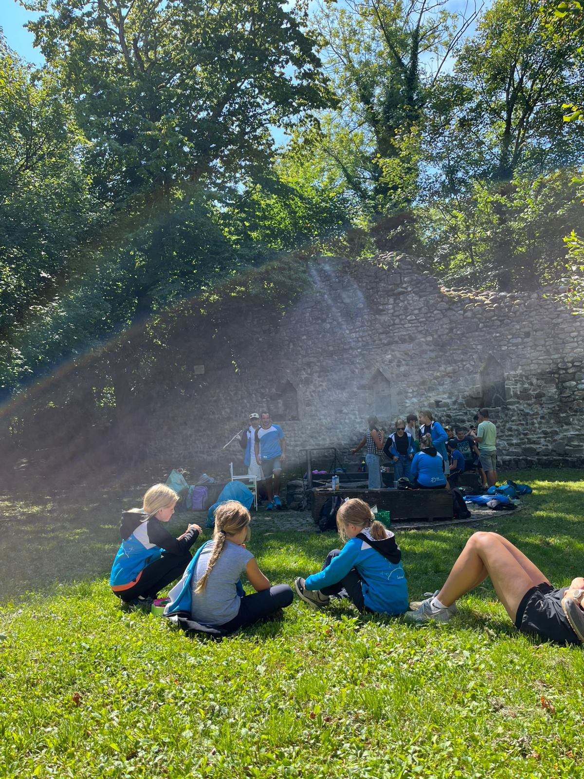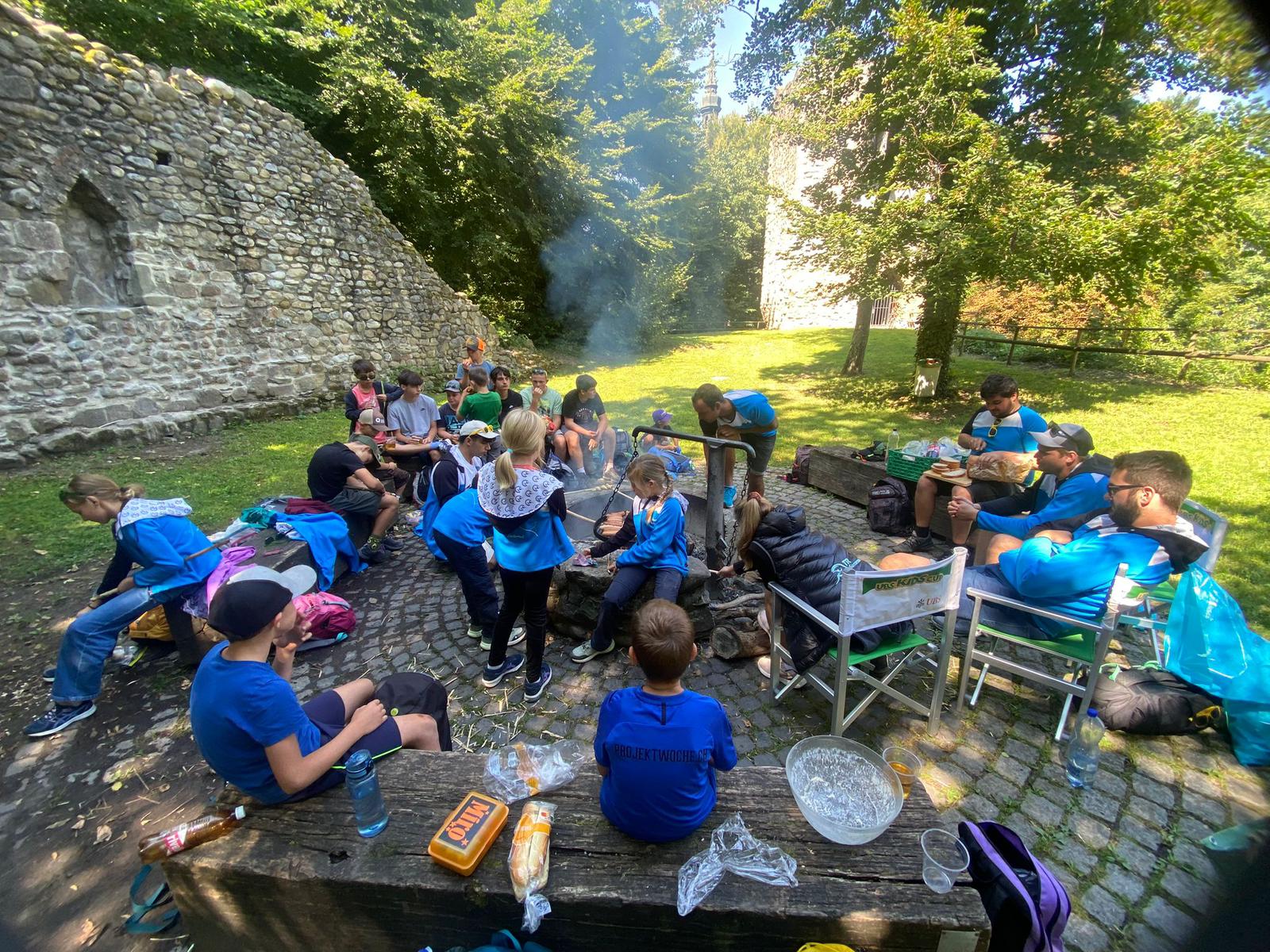 Am nächsten Morgen hiess es dann um 06.15 Uhr tagwach, damit wir um 07.00 Uhr das anschliessende Morgenessen geniessen konnten. Gestärkt marschierten wir von Frasnacht zum Bahnhof Romanshorn. Von dort aus ging es weiter nach Tägerwilen. Von Tägerwilen gingen wir zur Ruine Castell in Tägerwilen, wo wir das Mittagessen wieder am Feuer geniessen konnten. Gestärkt liefen wir nach dem Mittag noch das letzte Stück von Tägerwilen nach Sonterswil.